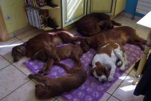 Mes chiens vivent ensemble à la maison, en bonne harmonie, participent à notre vie quotidienne, nous accompagnent dans nos déplacements et sont d'excellents auxiliaires pour l'éducation des petits chiots.